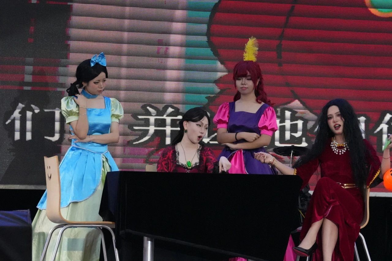 除了游戏惊喜,“白日梦”舞台演出也为大家带来了一系列精彩的节目表演。《京剧变脸》将非遗文化与动漫元素完美结合,为观众带来了一场全新的视觉体验。《后妈茶话会》中,同学们化身为经典动漫形象,每一个角色都栩栩如生,展现了他们的表演天赋。《Cos大走秀》则是一场跨越次元的视觉盛宴,表演者们以精湛的cosplay技艺展现了二次元世界的魅力。