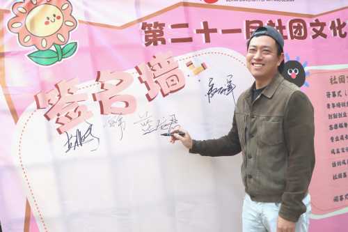 当第二十一届社团文化节开幕式圆满落下帷幕,大礼堂外热烈的氛围丝毫不减。老师、社管部工作人员与社团同学们满怀着对社团的热忱,纷纷在签名墙上签下自己的名字,每一个名字都倾注着对社团文化的热爱,以及对社团未来蓬勃发展的殷切期盼。
