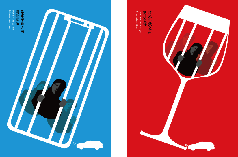 海报类:优秀奖  《交通安全系列作品-安全驾驶,勿酒驾,勿行车看手机》