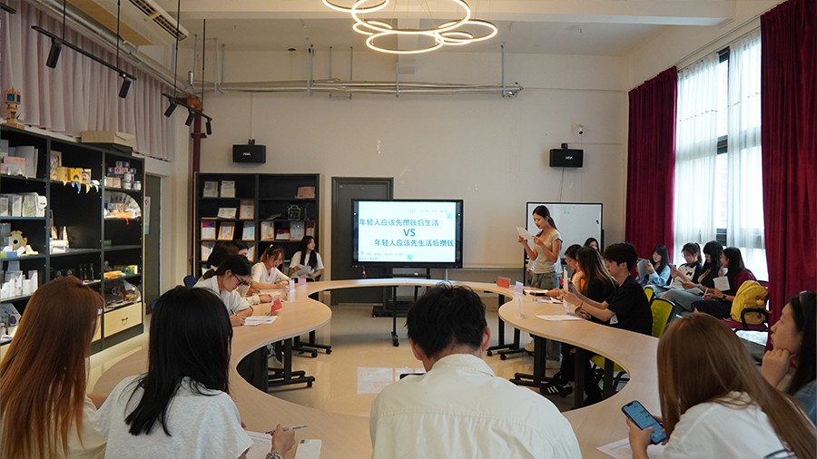 首先,由主持人向在场各位辩手介绍了抽题及辩论规则,并由各队队长抽签决定本队辩题。本次辩论赛的四个辩题分别是“年轻人应该先考虑积蓄还是先考虑生活”“如果人生是一本小说,人物还是情节哪一个更重要”“爱与被爱哪一个更幸福”“时间赋予生命意义还是生命赋予了时间意义”。