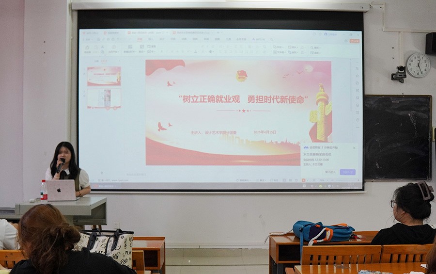 为加强当代大学生的职业规划观念,提升就业核心竞争力,2025年4月15日中午,设计艺术学院在西区伦理楼105教室开展了关于“就业观念指导”的主题团日活动。