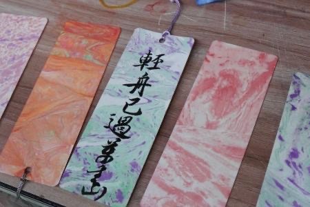 “书签DIY”活动中,参与者领取包含宣纸、流苏、水彩笔等材料的创作素材,通过题写诗词、绘制插画等方式完成个性化书签。“以诗换花”环节则创新采用“诗词做题”的机制,参与者需完整书写出古典诗词方可兑换春日鲜花,活动累计交换诗句300余条。