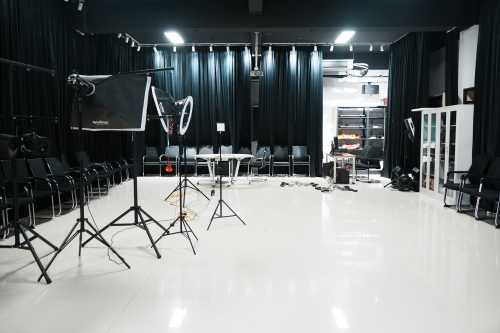 建筑与环境艺术学院摄影室位于北海艺术设计学院西校区公德楼407室,使用面积47平方米,于2024年3月建成并投入使用。摄影室内部安装遮光窗帘,墙面涂黑,以精准调控室内光线条件。摄影室备有20台佳能专业相机、20台尼康专业相机,50余种不同类型的灯光器材,包括帕灯,染色灯,面光灯,光束灯等专业灯具,可适用于大型演出及室内照明。摄影室内还备有可调式灯光架、灯钩,保险绳及航空箱等一系列专用设备,力求为建筑与环境设计专业的同学们打造一个专业的摄影室环境。