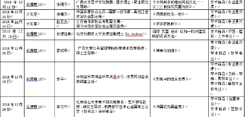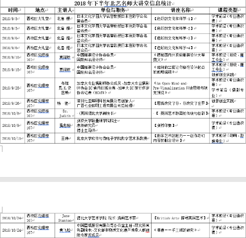 2018年下半年北艺名师大讲堂信息统计
