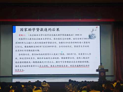 大会伊始,巴瑞斌副书记围绕国家资助政策体系展开宣讲。他详细解读了国家奖学金、助学金、助学贷款等项目的申请条件、发放流程及后续管理要求,重点强调了“诚信申请、合规使用、按时履约”的核心原则。通过典型案例分析,他指出部分学生因诚信缺失导致的违约后果,警示同学们要珍惜资助机会,让学生意识到逾期还款不仅造成罚息和违约金,我们的个人信用还会受损,还可能会被催债,被起诉,违约情节严重的贷款人还将承担相关法律责任。