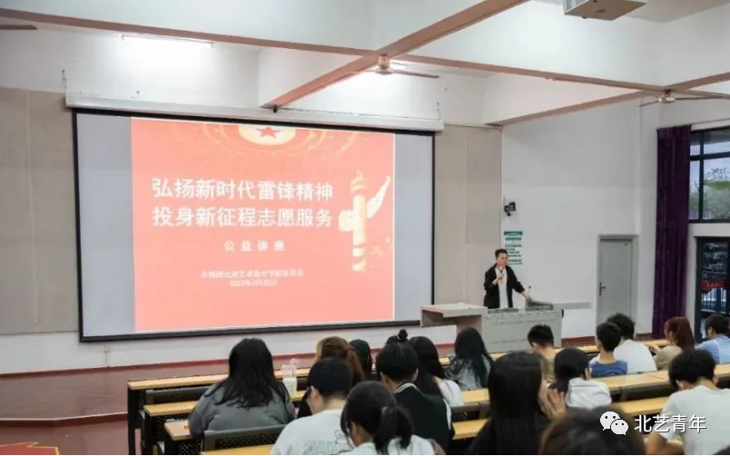 为大力弘扬雷锋精神,凝聚青春奋进力量,北海艺术设计学院3月25日组织6300余名同学学习第四期“弘扬新时代雷锋精神,投身新征程志愿服务”——马誉炜将军《雷锋精神,激励人生》公益讲座,其中有近400名团员学生干部在我校西校区伦理楼107阶梯教室进行线下集中观看。