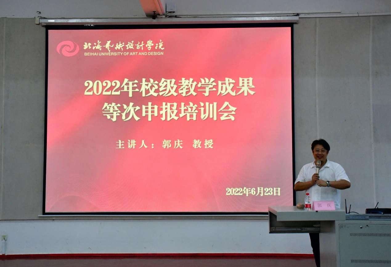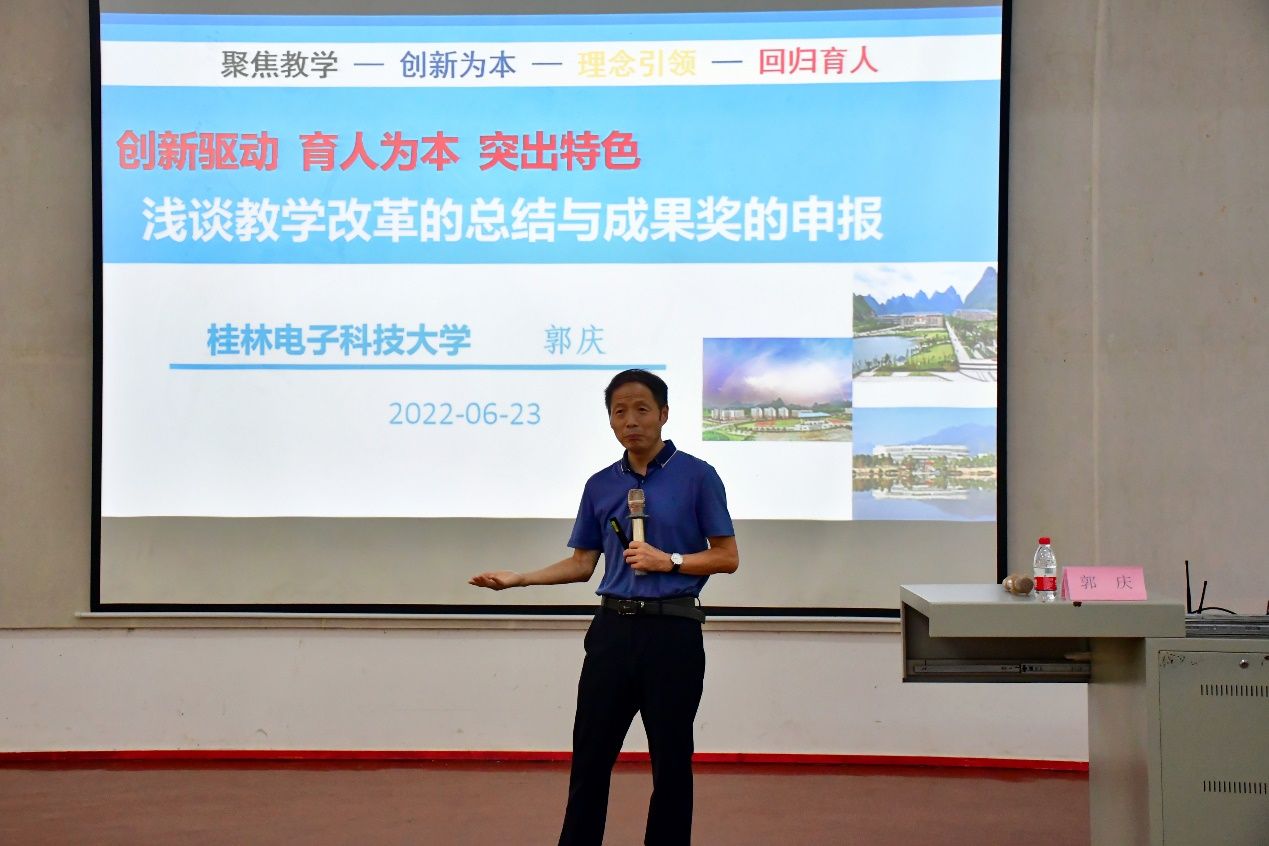 为更好总结我校教育教学改革经验,培育高水平教学成果,提高2022年校级教学成果等次申报工作质量,6月23日,学校特邀请原桂林电子科技大学教务处处长郭庆教授开展了关于高等教育教学成果等次申报的培训。各职能部门、二级学院(部)正副职领导及有意申报教学成果等次的教师共200余人参加了培训。