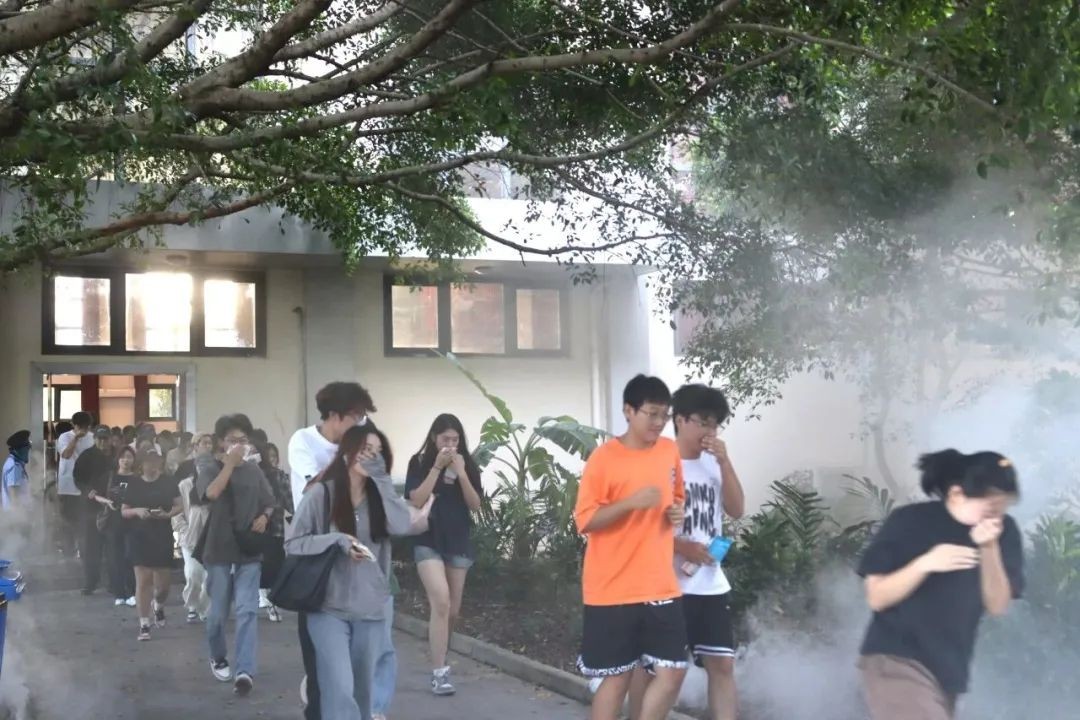 课堂教学结束后,我校在西校区操场分批依次进行消防逃生演练,以四个区域分别进行消防教育实际操作讲解,演练内容丰富,既有理论授课,又有疏散、灭火器灭火、穿戴过滤式消防自救呼吸器、灭火毯使用、连接水带、穿越模拟火场烟道充气帐篷、心肺复苏等逃生、自救互救技能实际操作,进一步巩固了师生对逃生工具和消防器械的使用技巧,实操训练更是大大提升了师生应对突发火情的处理能力。