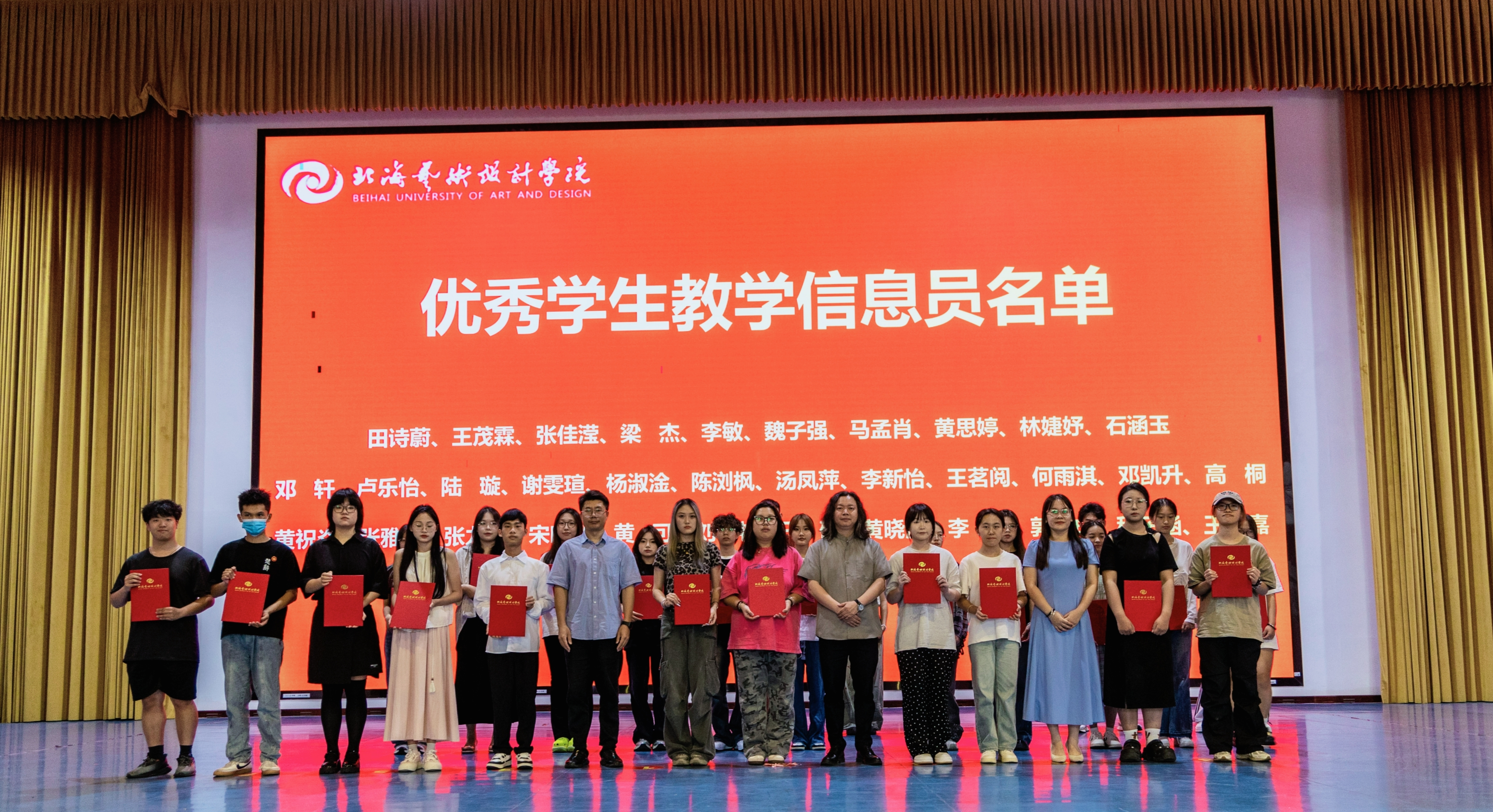 在本学年的工作中,许多学生教学信息员以出色的工作表现赢得了大家的认可和赞誉,经过严格的评选和审核,学校最终评选出了一批优秀信息员。在表彰仪式上,主持人宣读了优秀信息员的名单,并请获奖的同学上台领奖。