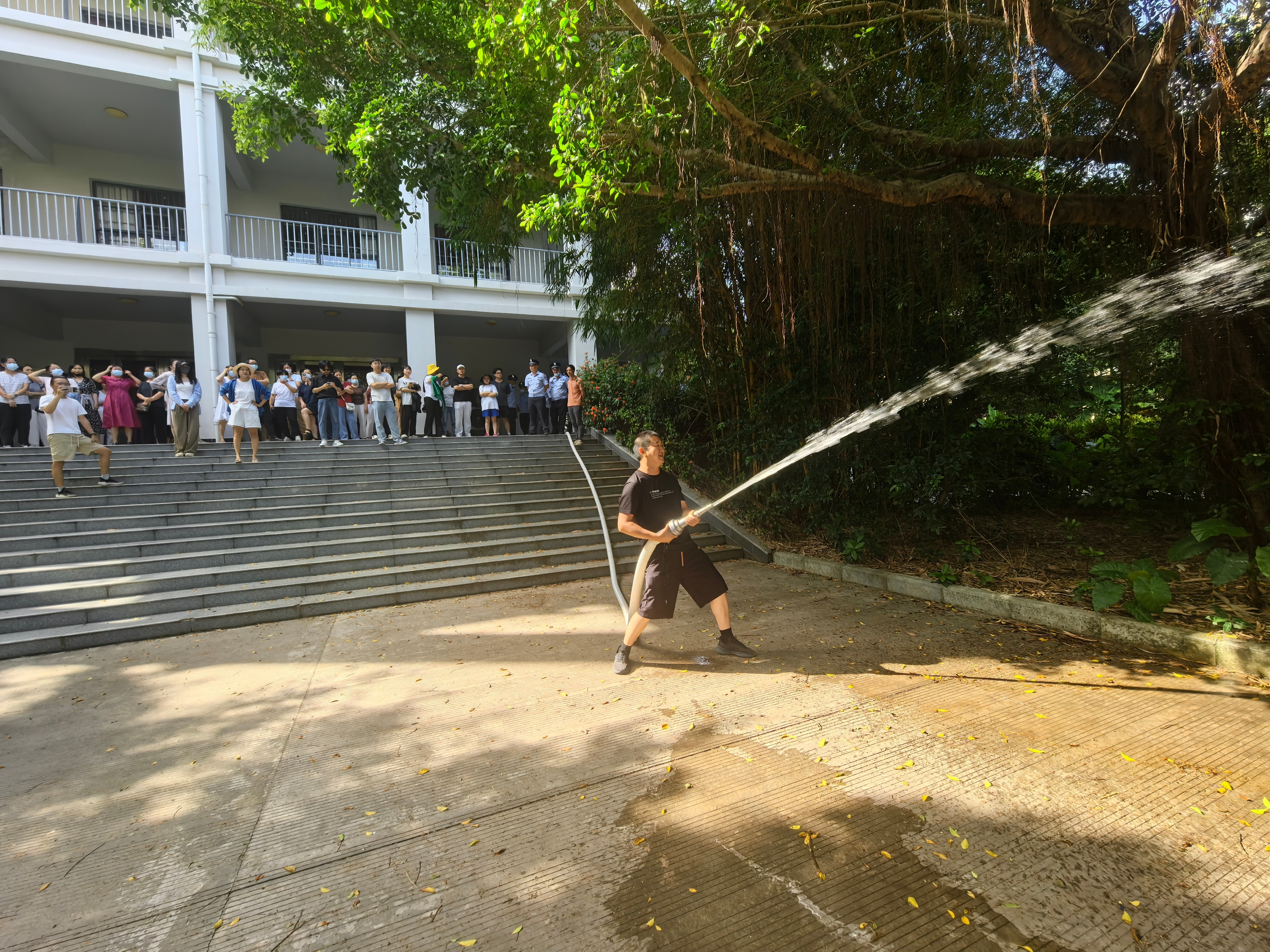 参训人员亲身体验了灭火器、灭火毯、高压水枪的正确使用方法。通过模拟火场环境,大家不仅感受到了火灾现场的紧迫与危险,更在实战中掌握了有效的应急处置技能,实现了“会使用灭火器、会急救、会疏散逃生”的既定目标。