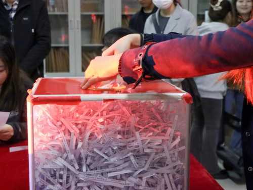 12月26日在行政楼118开展2024年元旦晚会抽奖活动封箱仪式,出席本次仪式的有:学工处副处长马啸老师、团委副书记宋慧敏老师、团委副书记杨美琪老师以及各二级学院学生代表。