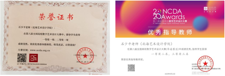 加强学习、紧跟学术前沿。在完成繁重的教科研工作之余,石少平老师积极参加各级赛事,提升个人教学水平,在2019年荣获广西壮族自治区优秀教师称号;2019年参加全区第六届青年教师教学竞赛并荣获校赛一等奖、区赛工科组优秀奖;2021年第二十届广西高校教育教学信息化大赛《展示模型制作》荣获优秀奖,校赛三等奖;2022年获广西第二届高校教师教学创新大赛校赛副高组二等奖并推送区赛;2022年获北海艺术设计学院第三届高校教师教学创新大赛校赛一等奖。
