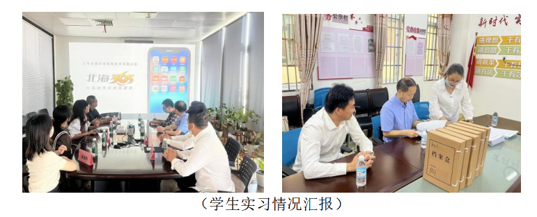 走访了海城区千朵培训有限公司、北海富安居设计创意实践基地、远见传媒、北海365、海城区第一幼儿园等企事业单位。期间,各单位负责人带领参观了办公环境、实习生工作情况并汇报了合作情况、课程共建、以往实习生的工作痕迹及合作单位对实习生的培训等情况。