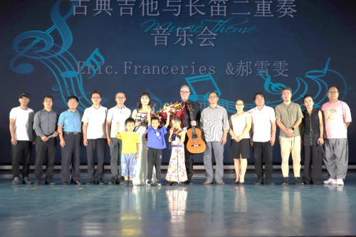 10月26日晚,北海艺术设计学院客座教授旅法长笛演奏家郝雪雯女士和古典吉他演奏家埃瑞克·弗朗塞利(Eric Franceries)先生,在我校西校区大礼堂带来了一场精妙绝伦的《古典吉他与长笛二重奏》音乐会。我校及社会各界领导嘉宾与我校广大师生、北海市民一起观看了演出。音乐会由人文教育学院教师卢尚蕊主持。