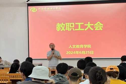2024年6月25日我院在西校区伦理楼101召开了本学期期末教学总结大会。分管校领导王斌总督学、教务处曾之光副处长、熊秀峰院长、李水亮副院长、李谦副院长、梁镨文副院长、党总支邓欢副书记及全体教职工参加了会议。