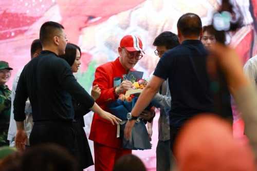 为了满足同学们的合影要求,章老师走到舞台前,蹲下身子,与现场全体同学一起合影。随着潮水般汹涌的欢呼声,摄影师将章老师亲切和蔼的笑容,与同学们脸上洋溢的喜悦与激动,定格成了永恒的瞬间。合影结束后,章老师站起身来,向同学们挥手致意,感谢他们的支持。同学们以雷鸣般的掌声和欢呼声向章老师致以最崇高的敬意和感谢。