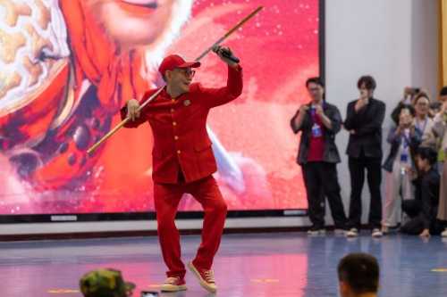 在讲座即将落下帷幕之际,全场气氛达到了最高潮。章金莱老师金箍棒在手,英姿飒爽,瞬间点燃了所有人的热情。表演中,章老师不仅展现了高超的武术技巧,更通过细腻的表情和肢体语言,将孙悟空复杂的性格特征刻画得淋漓尽致,让观众仿佛身临其境,亲眼见证了孙悟空从顽皮的石猴成长为一代英雄的传奇历程。这一刻,全场响起了经久不息的掌声,不仅是对章老师精湛演技的赞叹,更是对《西游记》这部经典作品以及其中所蕴含的深厚文化底蕴的致敬。