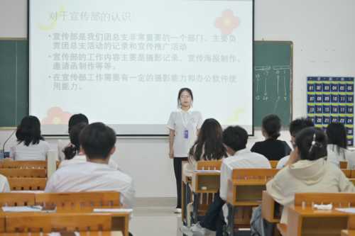 大会第二项议程,团总支各部门负责人总结汇报。团总支主席张佳巾总结了过去一年的工作,涵盖思想引领、组织建设和校园活动等方面,同时指出不足并提出期望。组织部汇报了团员发展和关系转出等工作内容;宣传部展示了邀请函和创意海报等成果;文体部分享了新闻稿撰写的相关要求和校园运动会等活动;纪检部强调了考勤监督和卫生检查的重要性。各部门总结了成绩与经验,分析了不足,并展望了未来工作。此次汇报使全体学生干部了解了过去一年的工作情况,为换届工作奠定基础,激励大家继续奋进。