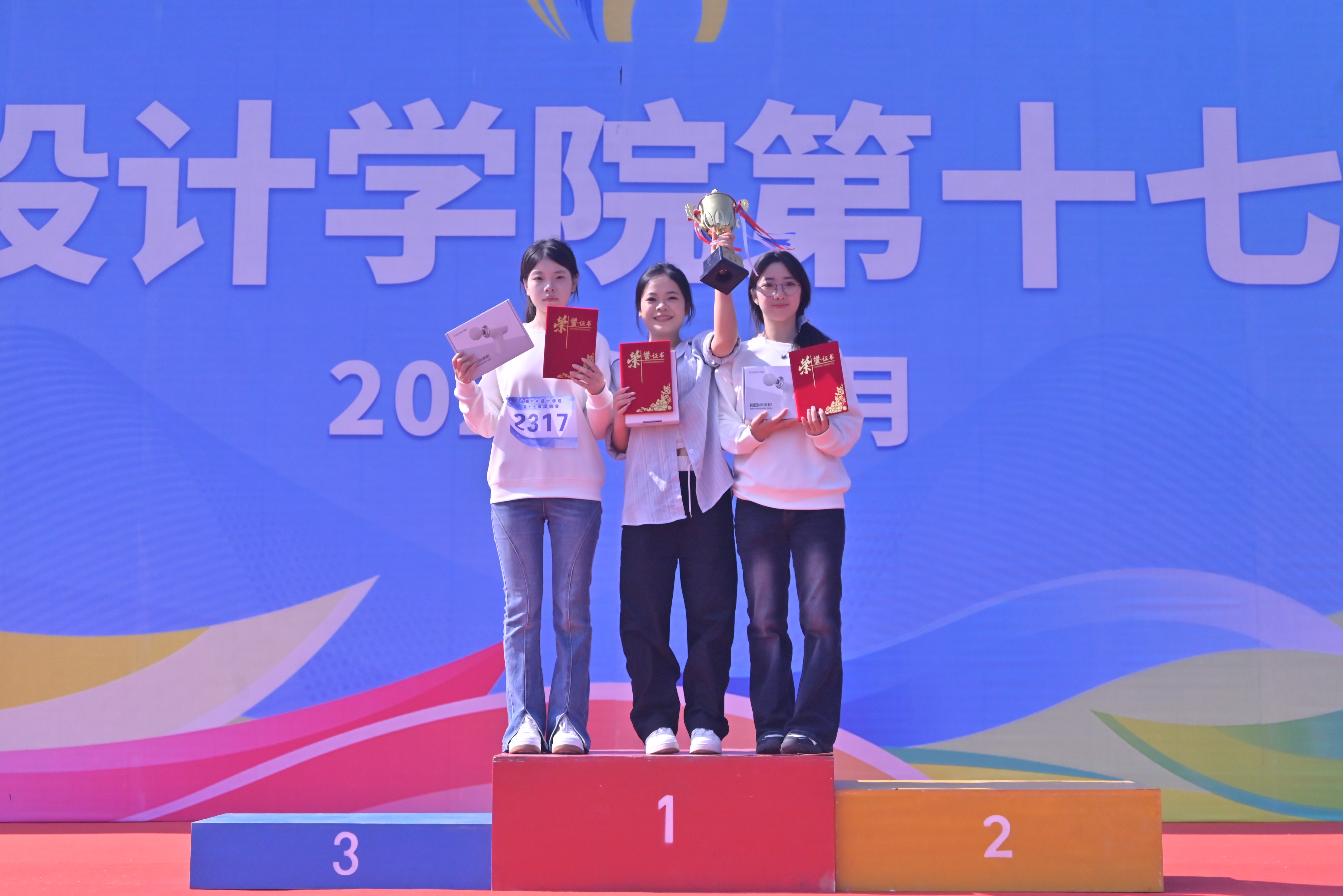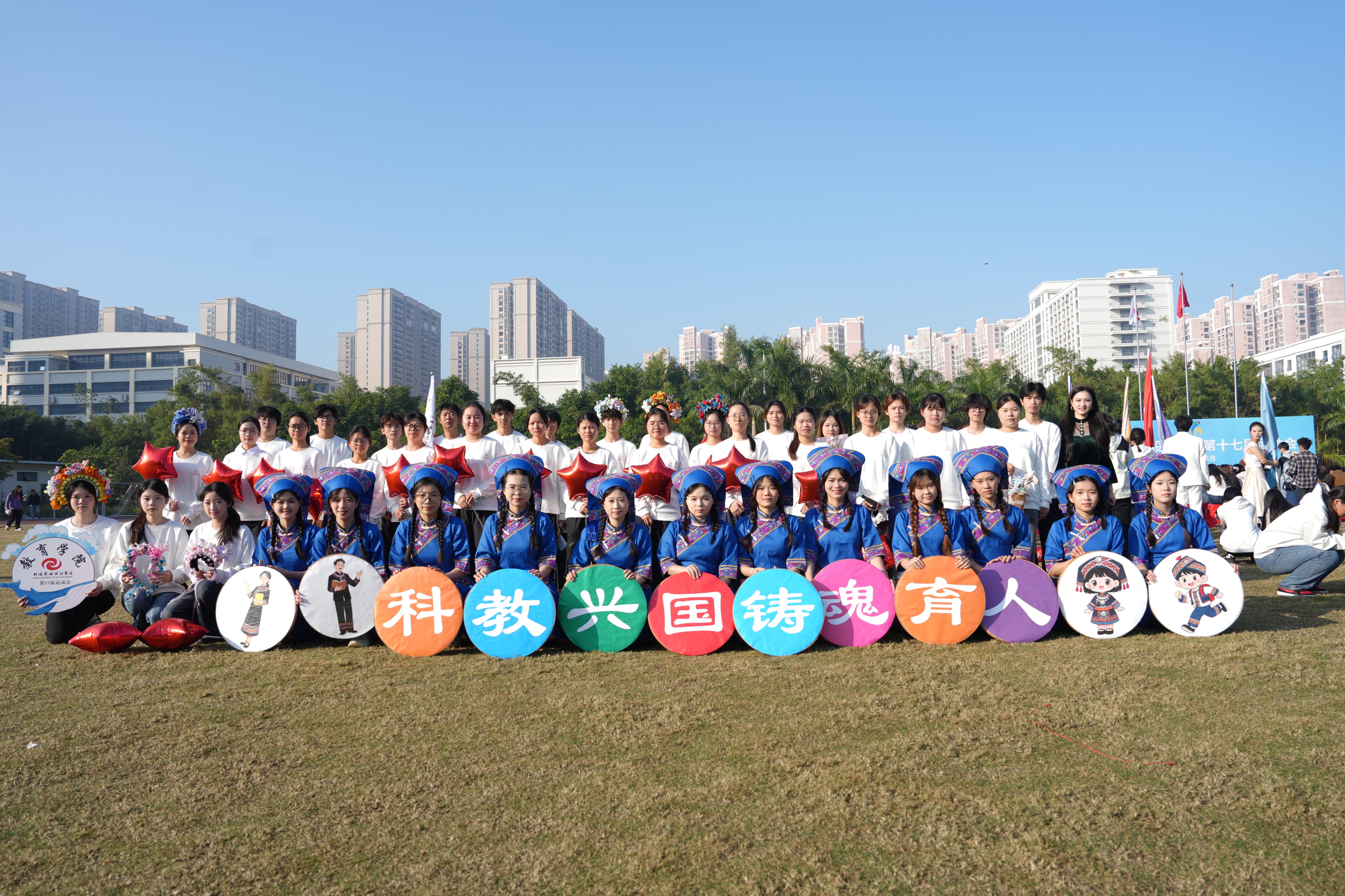 2025年12月19日至20日,我校第十七届运动会在东、西校区田径场顺利举行,教育学院全体师生积极参与并取得优异成绩。教育学院党支部书记黄思敏与学生代表共同参与开幕式方阵表演。