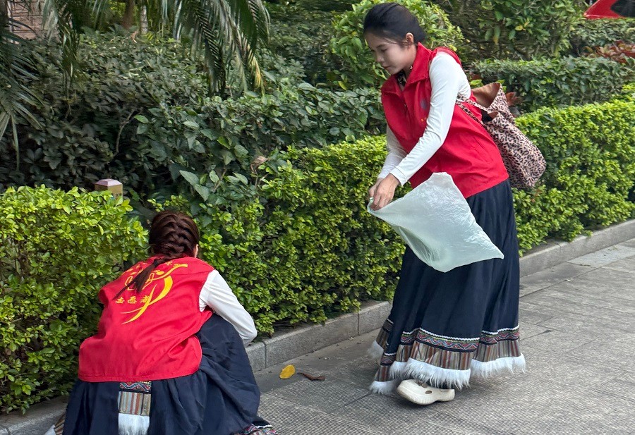 表演结束后,同学们化身社区环境的“守护者”。大家分工协作,沿着社区的道路、绿化带认真清理烟头、纸屑、塑料瓶等垃圾,社区的环境面貌焕然一新志愿者们的行动也感染了很多社区群众他们主动加入清理队伍,共同为干净整洁的社区环境出力。