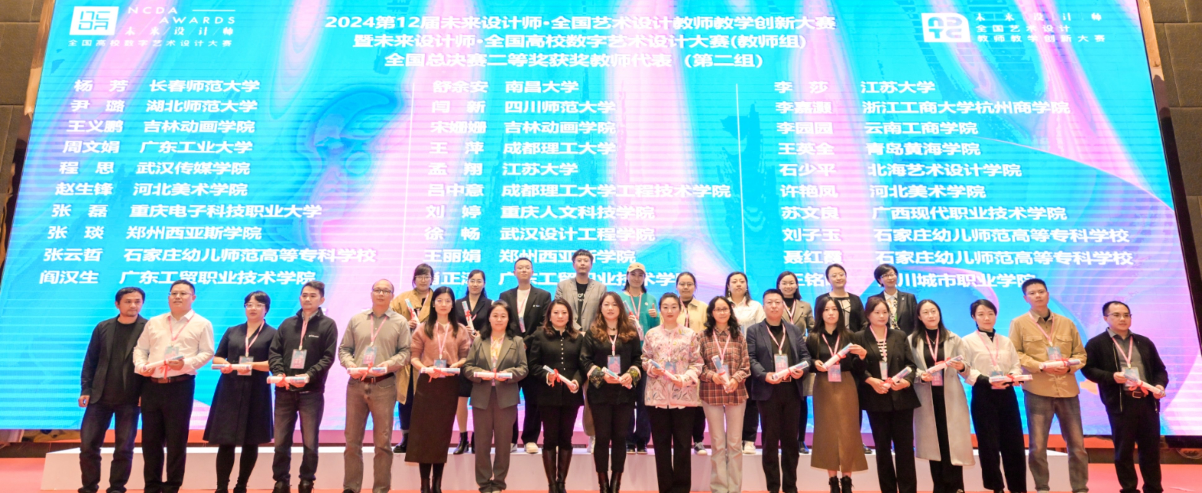 2024年11月16日,第12届“新质设计·创智未来”设计教育论坛暨2024未来设计师·全国高校数字艺术设计大赛(NCDA)及未来设计师·全国艺术设计教师教学创新大赛(NDTC)颁奖典礼在重庆两江云顶大酒店盛大举行。我院教师石少平以其卓越的教学创新能力和优秀的课程设计,在此次全国艺术设计教师教学创新大赛总决赛中荣获二等奖。