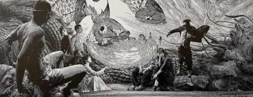 《洪荒》黑白木刻版画 80×105cm