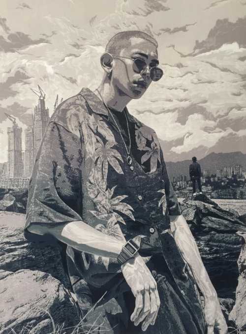 《庇护》 黑白木刻版画 70×180cm