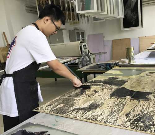 《向阳而生》 套色木刻版画 143×95cm