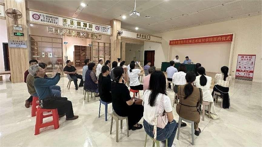 2024326日,北海艺术设计学院美术学院龚为院长一行四人前往北海市非遗体验馆走访调研,与北海市工艺美术协会、非遗传承人们探讨地方非遗发展。在二十余位工艺美术大师和非遗传承人的见证下,我院与广西海路非遗文化传播有限公司圆满完成了校企合作签约仪式。