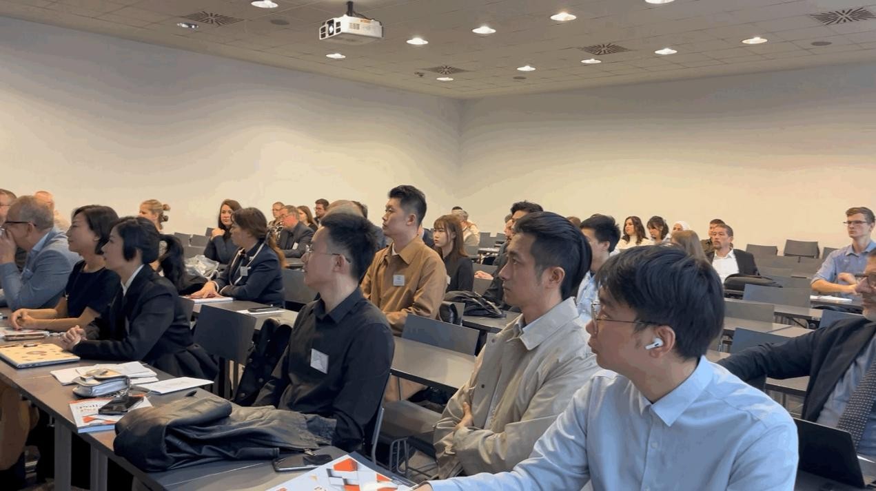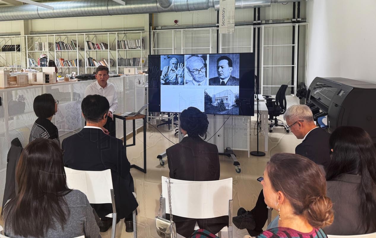 与此同时,代表团一行还参观了佩奇大学的设计实验室,该处集中展示了匈牙利设计教育领域的前沿探索与成果。佩奇大学机械工程系的Norbert教授向代表团阐述了该校的教学理念:“我们致力于引导学生在熟练掌握现代技术的同时,坚守传统工艺的精髓,因为这些是传统与创新相结合的设计灵感之源。”在校企合作单位考察环节,代表团参观了佩奇大型混凝土生产线,了解了建筑生态可循环理念和生产技术。