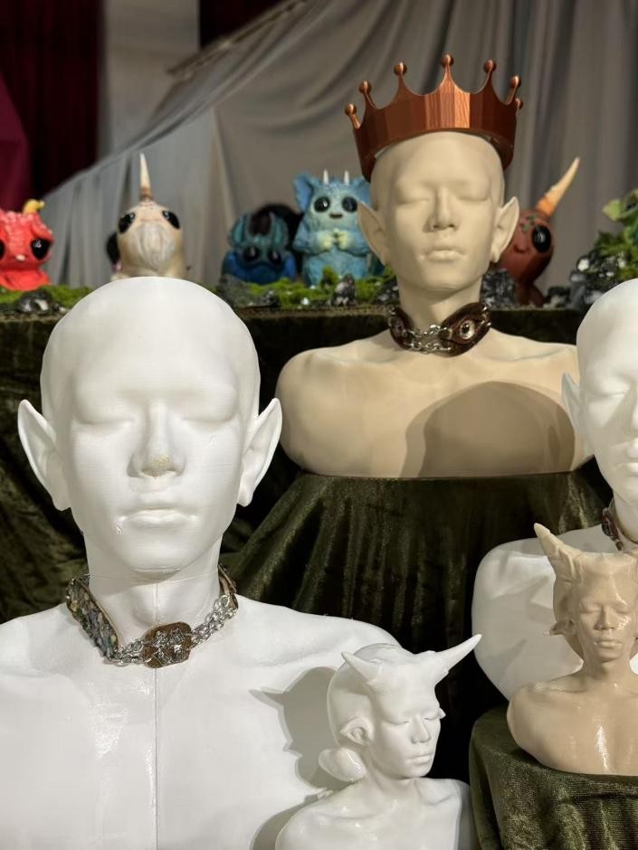 本次展览共展出三十余件数字雕塑作品,汇聚了雕塑专业2024级全体一年级学生的智慧结晶。这些作品不仅体现了学生们掌握ZBrush数字建模、KeyShot动态渲染、高精度3D打印等前沿技术的技艺运用,更展现了数字技术与雕塑艺术完美融合的创意魅力。每一件作品都如同一个充满想象与创造力的虚拟世界,让观众在虚实之间感受到了雕塑艺术的无限可能,也见证了美术学院在数字化艺术教育领域的深入探索。