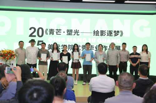 随后,学生代表分享了创作历程,表达了对母校培育的感恩之情。开幕式现场,学校领导为本次展览获得优秀奖的学生颁发获奖证书。