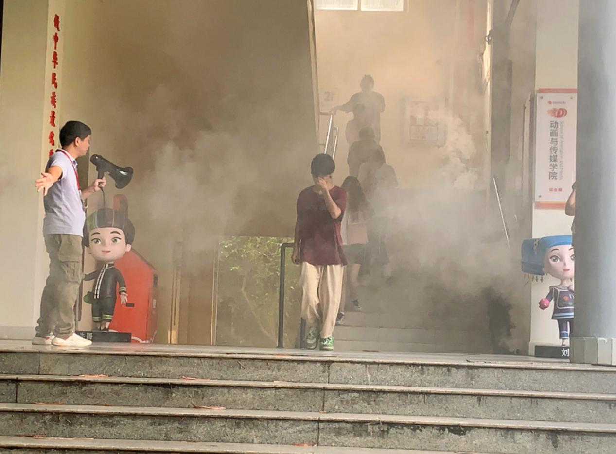 为切实提升师生对消防安全的认知及应急处理能力,5月23日下午动画与传媒学院在教学楼区域开展消防安全应急疏散演练活动。此次演练旨在通过模拟实战情境,让师生们亲身体验并掌握火灾应对的正确方法,确保在紧急情况下能够迅速、有效地进行疏散与自救。