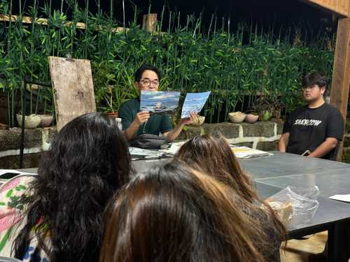 在涠洲岛期间,师生们分别前往南湾码头、天主教堂、鳄鱼山景区等地标性景点。通过“现场写生”与“环境考察”相结合的方式,捕捉自然生态与人文景观之间的共生之美,赋予作品生命力。在此过程中,多位教授在现场传授专业技艺,创作高质量范画。在课后,老师们围绕作品的构图布局、色彩运用、情感表达等多个维度对学生们的作品进行点评,指出亮点与不足,同时解决创作过程中所遇的实际问题,以期同学们创作出更多优秀的艺术作品。