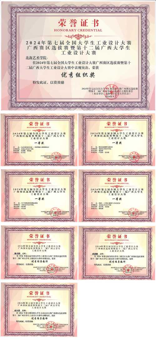 近日,喜讯传来,我院师生在2024年全国大学生工业设计大赛广西赛区中斩获佳绩。在本次比赛中荣获奖项33项,其中,一等奖4项,二等奖6项,三等奖23项,3名教师被评为“优秀指导教师”,我院荣获“优秀组织奖”。