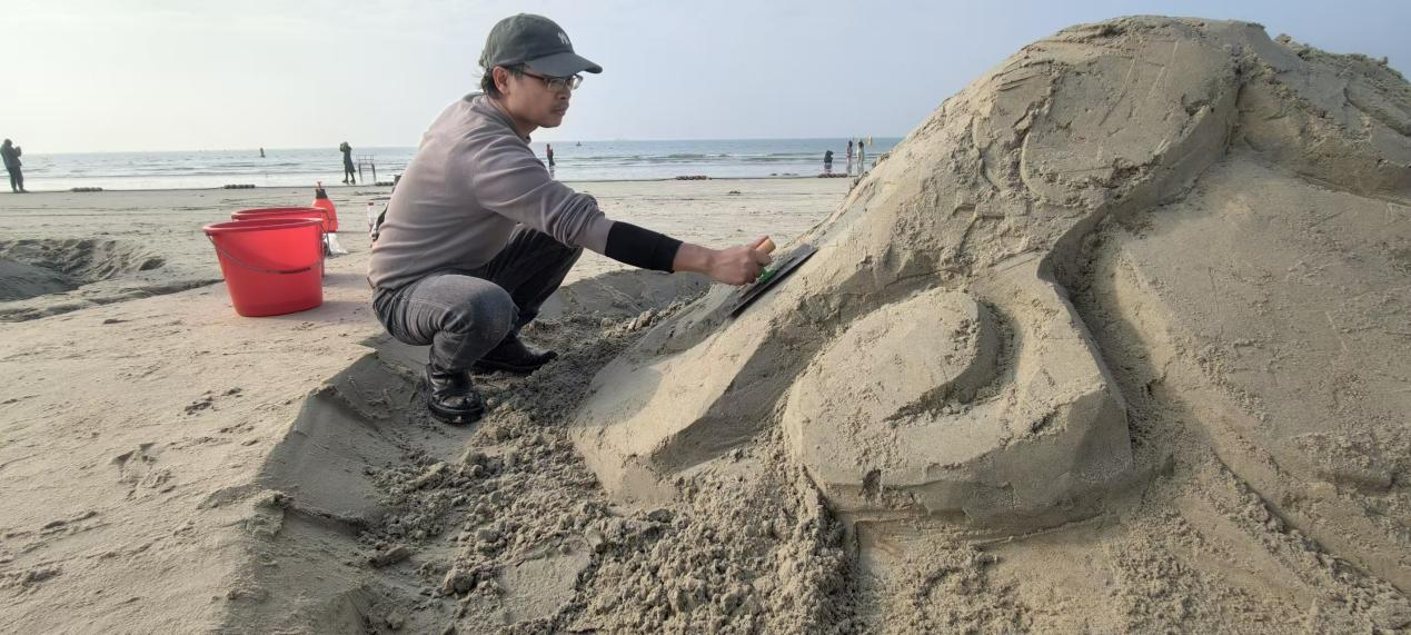12月30日,为弘扬传统沙雕艺术文化,提高艺术审美与实践教学的综合结合力,美术学院雕塑教研室组织24级雕塑学生在北海银滩举行沙滩教学实践活动。挖掘区域文化元素加以综合创作,让艺术实践服务于美丽的北部湾,让沙滩艺术创作与海滩美景共放光彩。