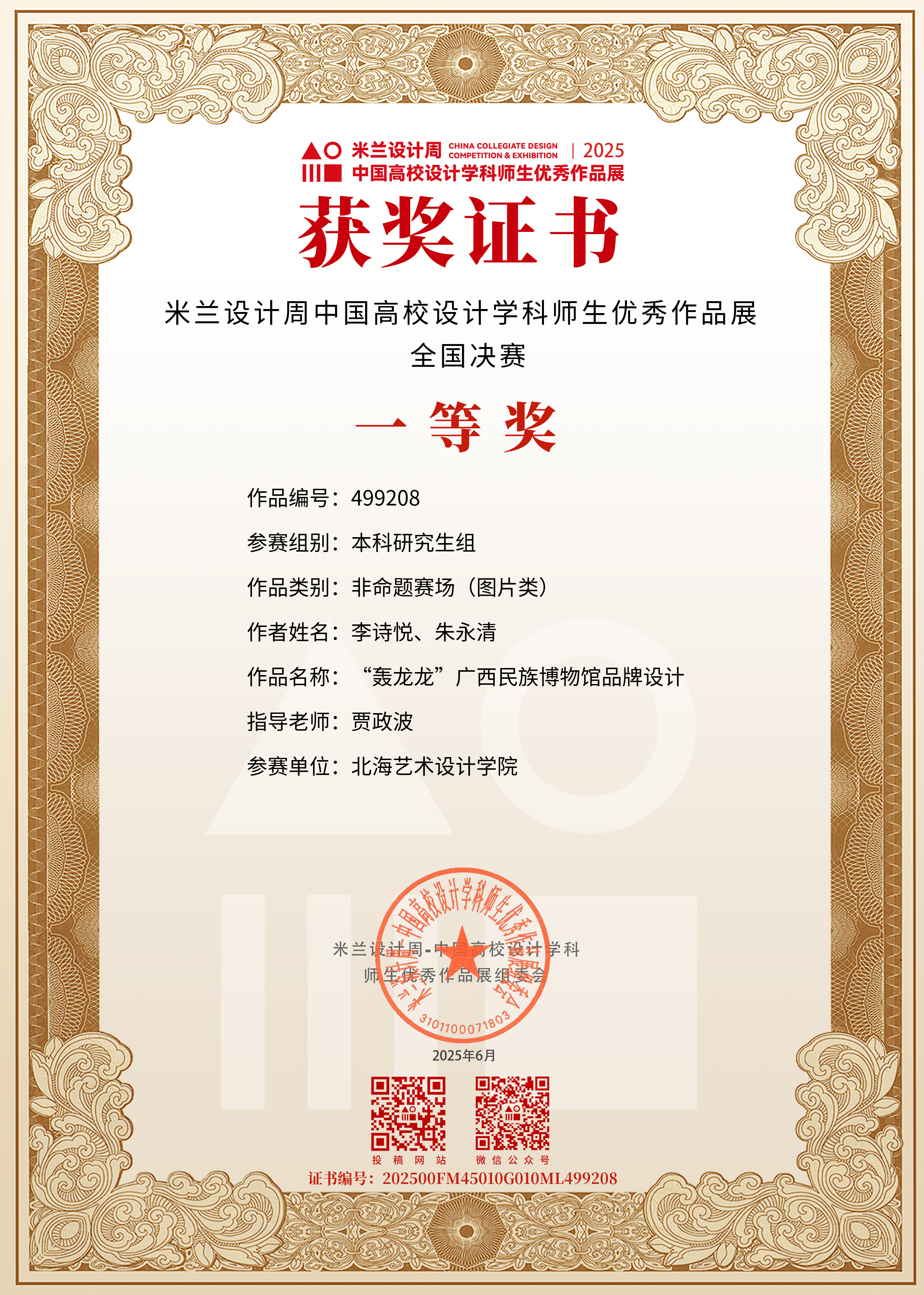 近日,2025年第九届“米兰设计周-中国高校设计学科师生优秀作品展”全国赛事圆满落幕一直以来,设计艺术学院领导高度重视本项赛事,我院教师凭借丰富的赛事指导经验及卓越的专业实力与创新精神,组织带领学生在此次赛事中从全国1759所高校的270000余件参赛作品中脱颖而出斩获佳绩,共收获奖项142项,其中国赛32项(国赛一等奖4项、等奖8三等奖20)省赛110项(一等奖16项,二等奖43项,三等奖51项)。此次获奖,是对我院应用型人才培养思路和专业教学的充分肯定,也是对学生在设计领域扎实的专业技能和创新实践能力的认可。