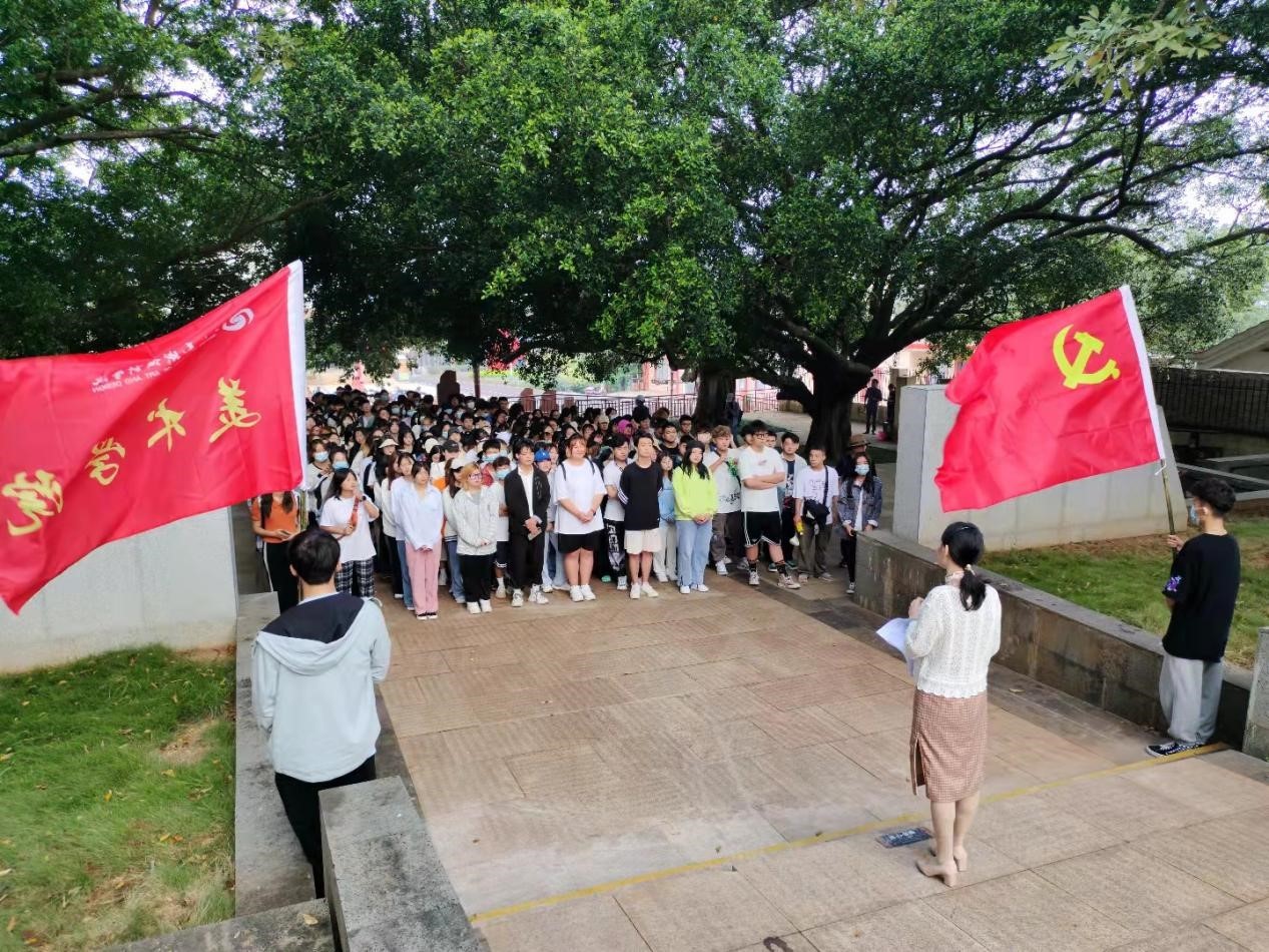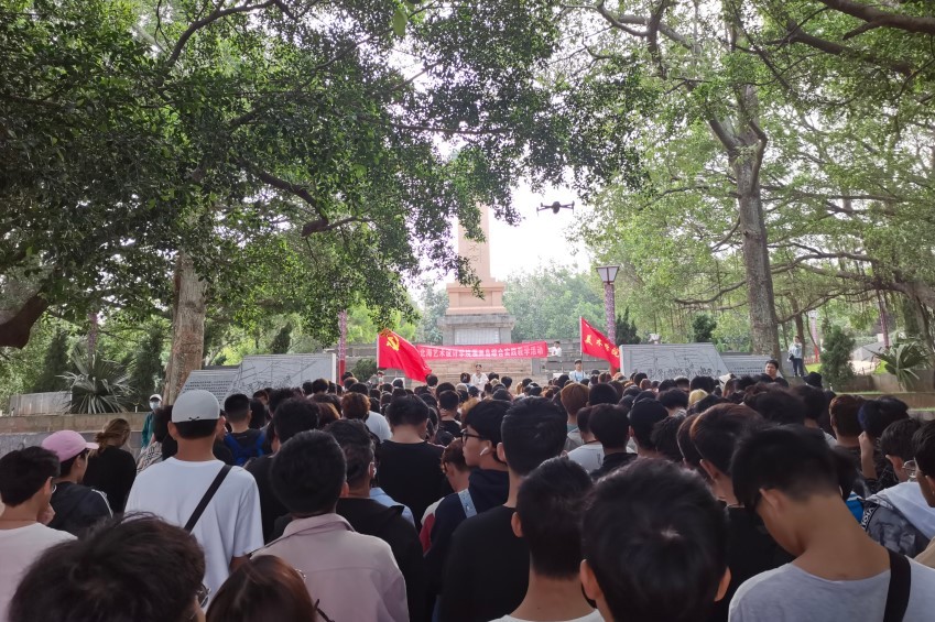 为进一步激发学生的爱国主义思想,追忆革命历史。在涠洲红色广场,马克思主义学院,思政部刘贻敏老师为同学们讲述了涠洲岛的革命抗战历程。