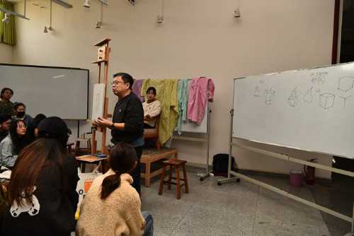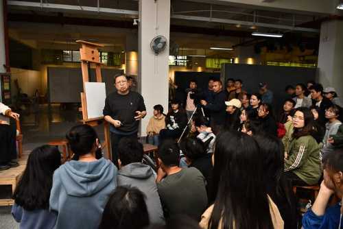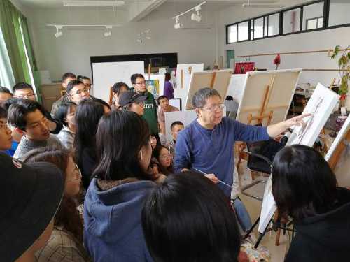 对美术学院的老师和学生代表进行了绘画基础培训,传授自己的教学方法。