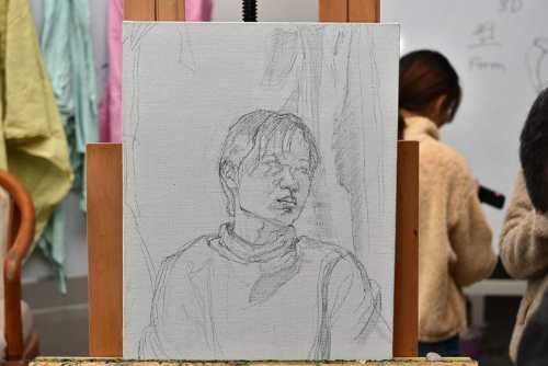 计宇教授现场示范人物写生步骤,对于人物写生中的模特,要综合考虑光线背景布置、动作摆放、周边环境等因素。计宇教授注重观察客观自然事物的特征,排除个人杂念,记录下偶然的灵感。
