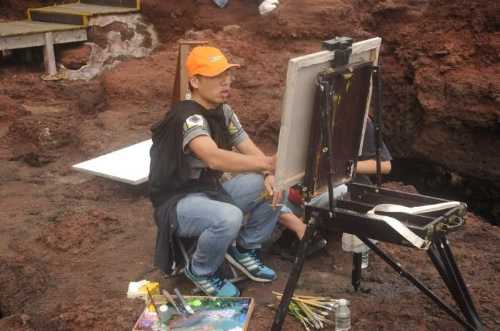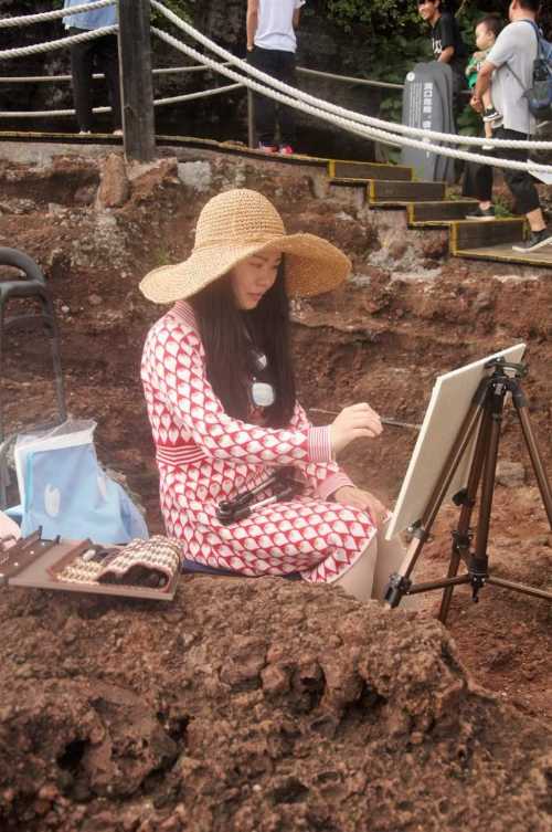 (火山口教师写生场景)