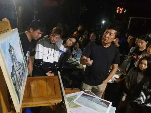 当天写生结束之后,晚饭之余邀请了各高校的教授前来进行作业讲评,教授们生动的教学表达使学生们受益匪浅。