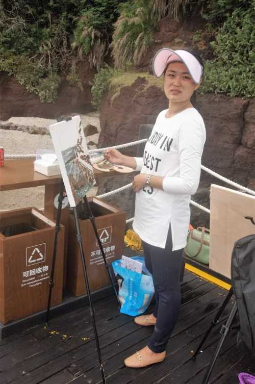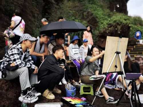 (火山口景区学生写生场景)