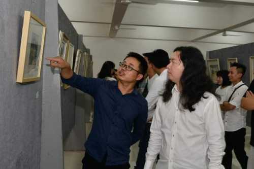 此次作品展有老师作品37幅、学生作品63幅组成。进入展厅中老师和学生的作品令我们惊叹,每位到场的老师同学无不细细琢磨每幅作品的精妙之处,给我们带来了一场视觉上的饕餮盛宴。
