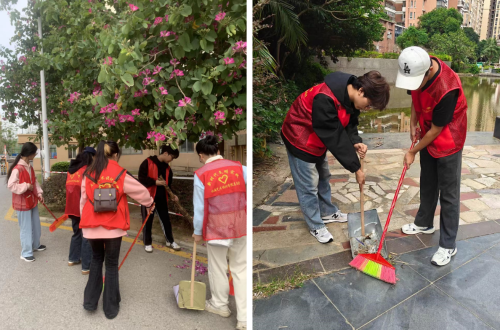 书法学院团支部进社区志愿服务响应了团中央的要求,展现我院青年学子的精神风貌与学风素养,充分体现了青年志愿者“团结,友爱,奉献,进步”的志愿精神。在营造干净整洁的社区环境面貌的同时也提高了书法学院志愿者队伍良好的协作能力,提高学生的主动意识、责任意识和服务意识,增强了学生社会责任感和使命感。同时也提升了社区居民的获得感、安全感、幸福感。在新时代里让社区服务更有温度,让志愿之花绽放在社区的每个角落!(潘悦、王应祖 摄)