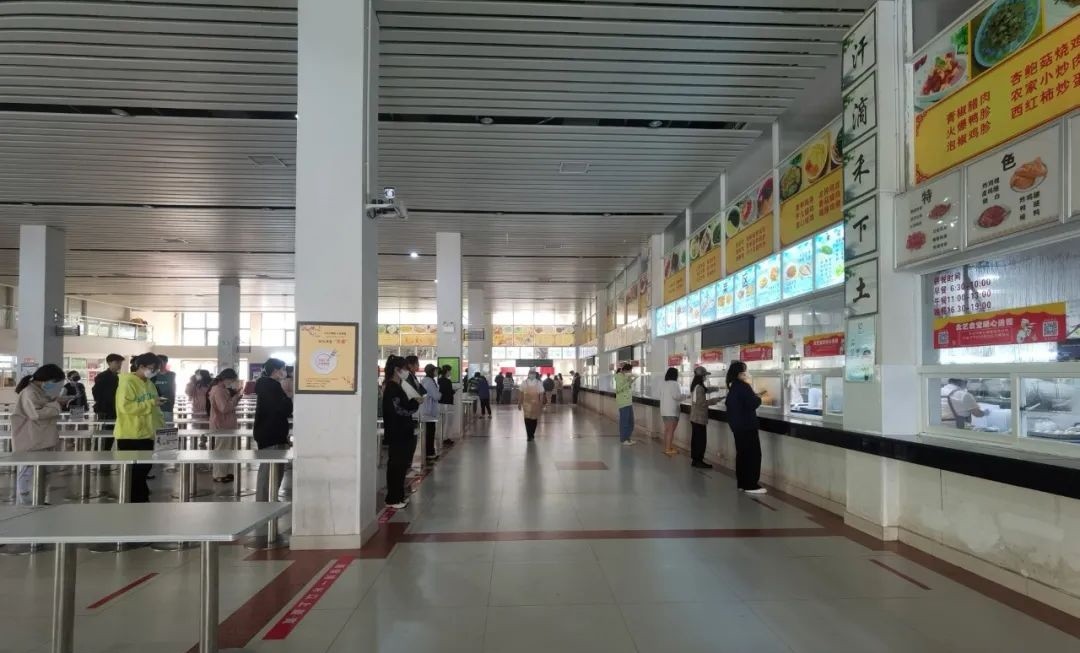 目前,食堂严格按照校园疫情防控要求,在食堂开放入口处均安排有工作人员对每一位入堂者进行体温测量,严格排队间距一米以上,严禁堂食,杜绝病毒交叉感染,同时强化全体食堂工作人员卫生防护意识,确保广大师生校园用餐的安全。