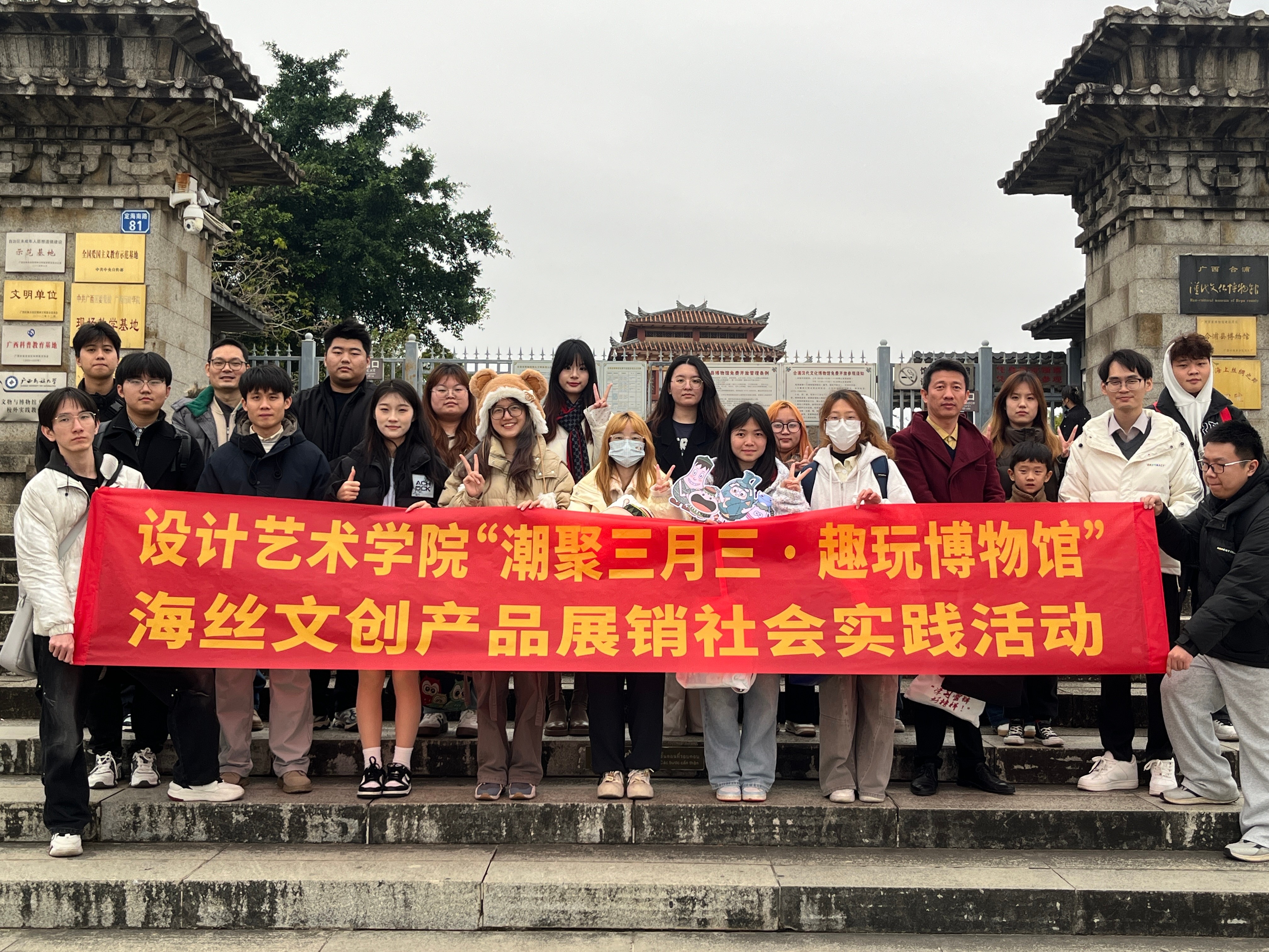 为弘扬传统文化,展示文化创意设计教学成果,推动海丝文化传承创新,设计艺术学院于农历三月三赴合浦汉代文化博物馆开展 “潮聚三月三 趣玩博物馆”海丝文创产品展销活动。活动由设计艺术学院副院长白建强带队,分团委副书记覃轶科、专业教师苏永兴与20余名学生代表共同参与。合浦汉代文化博物馆及我校建筑与环境艺术学院党总支书记庞定坤为活动提供了大力支持。