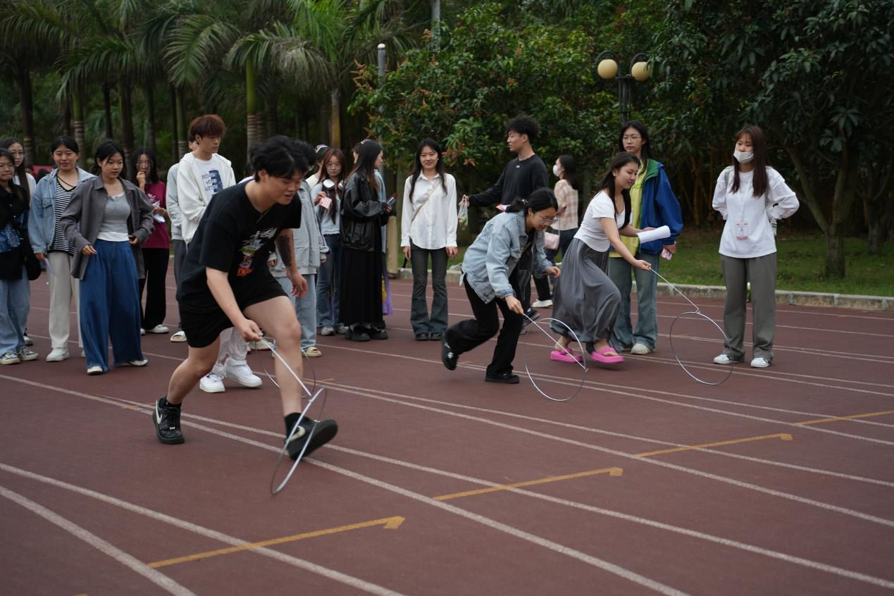 当天,学院师生身着各民族服饰,佩戴精美的配饰,通过民族舞蹈、民族歌曲、民族服装走秀等节目让在场师生“沉浸式”感受到壮乡儿女的独特与风情。此外,还举办了民族文化体验活动,学院师生参加了民族体育竞技、民族美食体验、民族手工艺品展示等活动。现场参与抛绣球、竹竿舞、背篓绣球、溜铁环旱地龙舟、手工绣球制作等民族活动,品尝了具有壮乡特色的民族美食,五色糯米饭、艾叶糍粑、彩蛋等,欣赏到了琳琅满目的民族手工艺品,尽显壮家儿女心灵手巧和热情好客,展现了八桂人民的幸福生活,给现场的师生带来了一场视听盛宴。