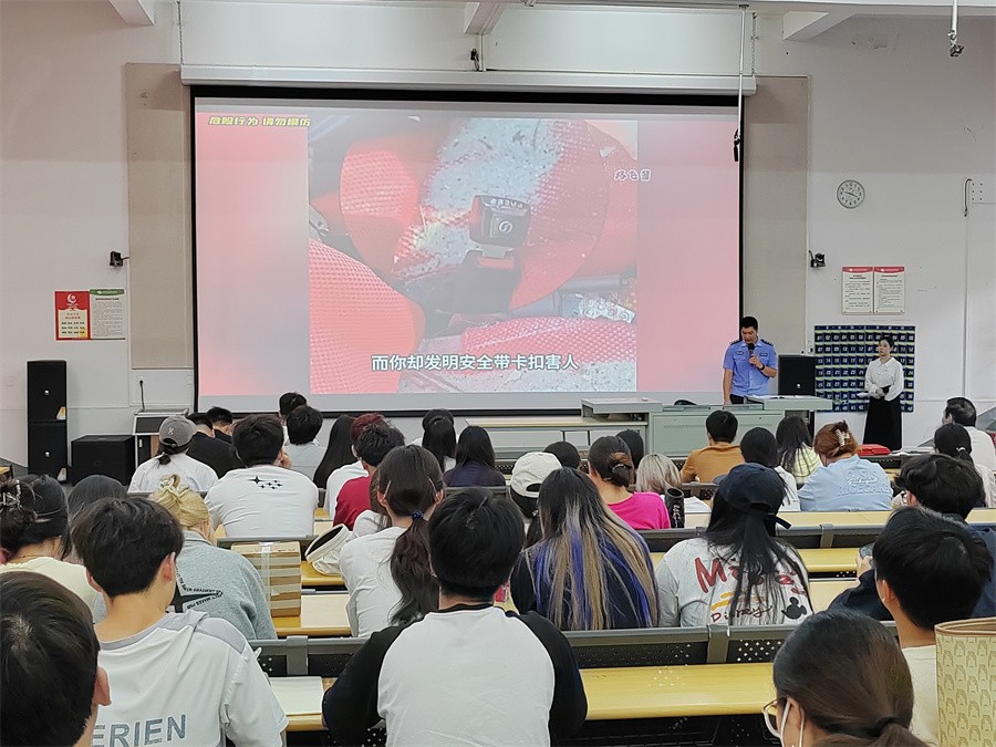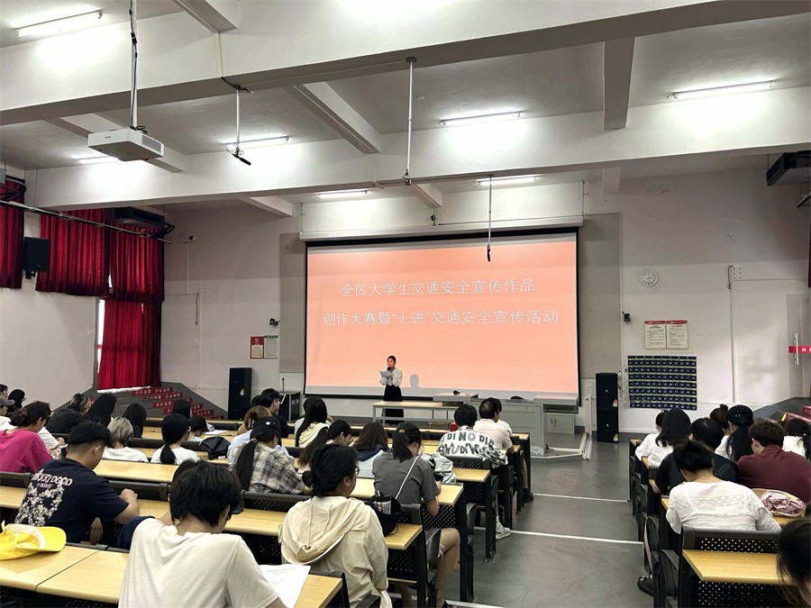 为强化大学生交通法治安全意识、文明意识,增强大学生道路交通安全宣传教育工作的针对性、实效性,着力提升大学生群体的道路交通安全风险防范意识、守法意识,推进交通安全文化建设工作,近日,我校联合北海市公安局交通警察支队法制宣传大队在西校区公德楼107教室举行全区大学生交通安全宣传作品创作大赛颁奖典礼暨“七进”交通安全宣传活动。学生工作处副处长马啸,北海市公安局交通警察支队法制宣传大队副大队长金子,各二级学院师生代表参加活动。