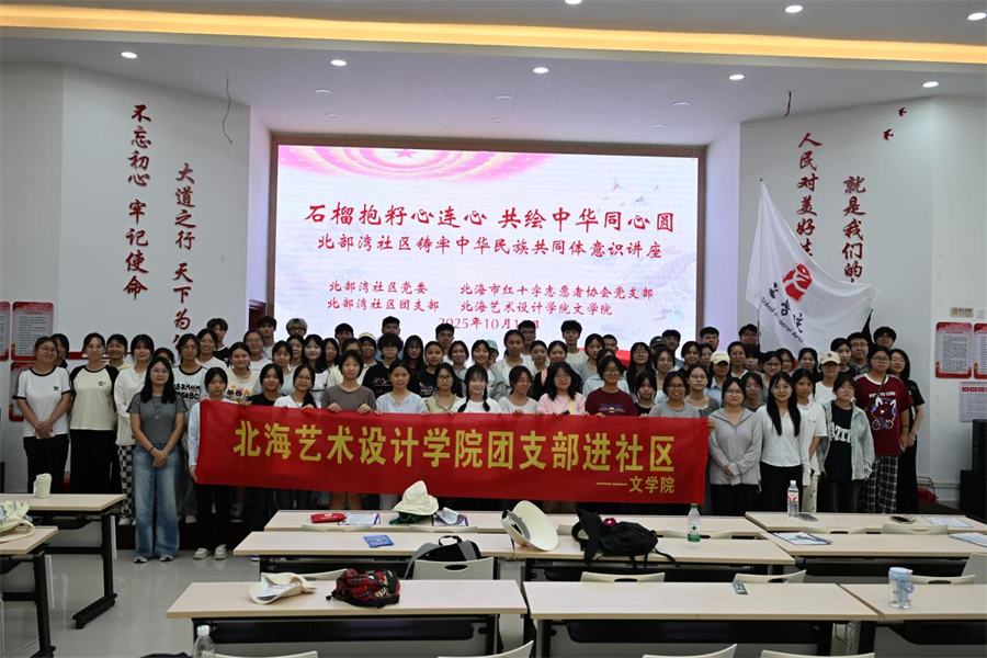 为践行社会主义核心价值观,弘扬“奉献、友爱、互助、进步”志愿服务精神,进一步加强基层团组织建设,10月12日,文学院组织各年级团支部及分团委代表在北部湾社区协助开展“石榴抱籽心连心·共绘中华同心圆”社区志愿服务活动。
